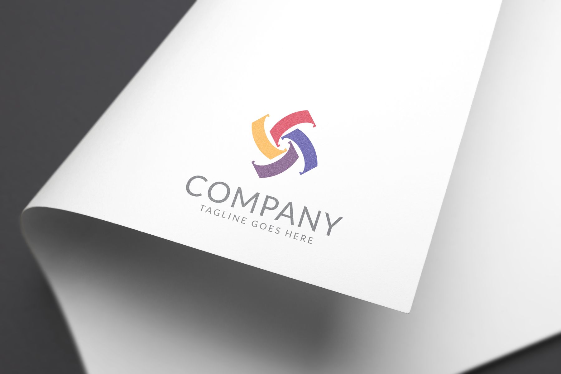 This is unique, colorful Logo design template featuring a carousel, consist of four parts spinning around a center, in different bright, playful colors.